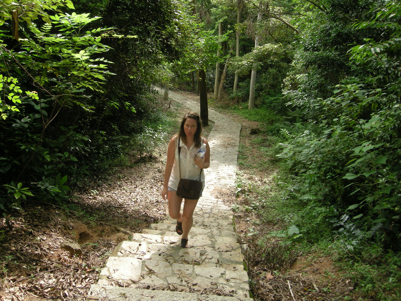 Efter två timmar av promenerande hade jag inte gnällt en enda gång! Vi fick därför hybris och beslöt oss gå upp för en höjd och kolla läget. Här är en bild när jag precis börjar gå uppför: