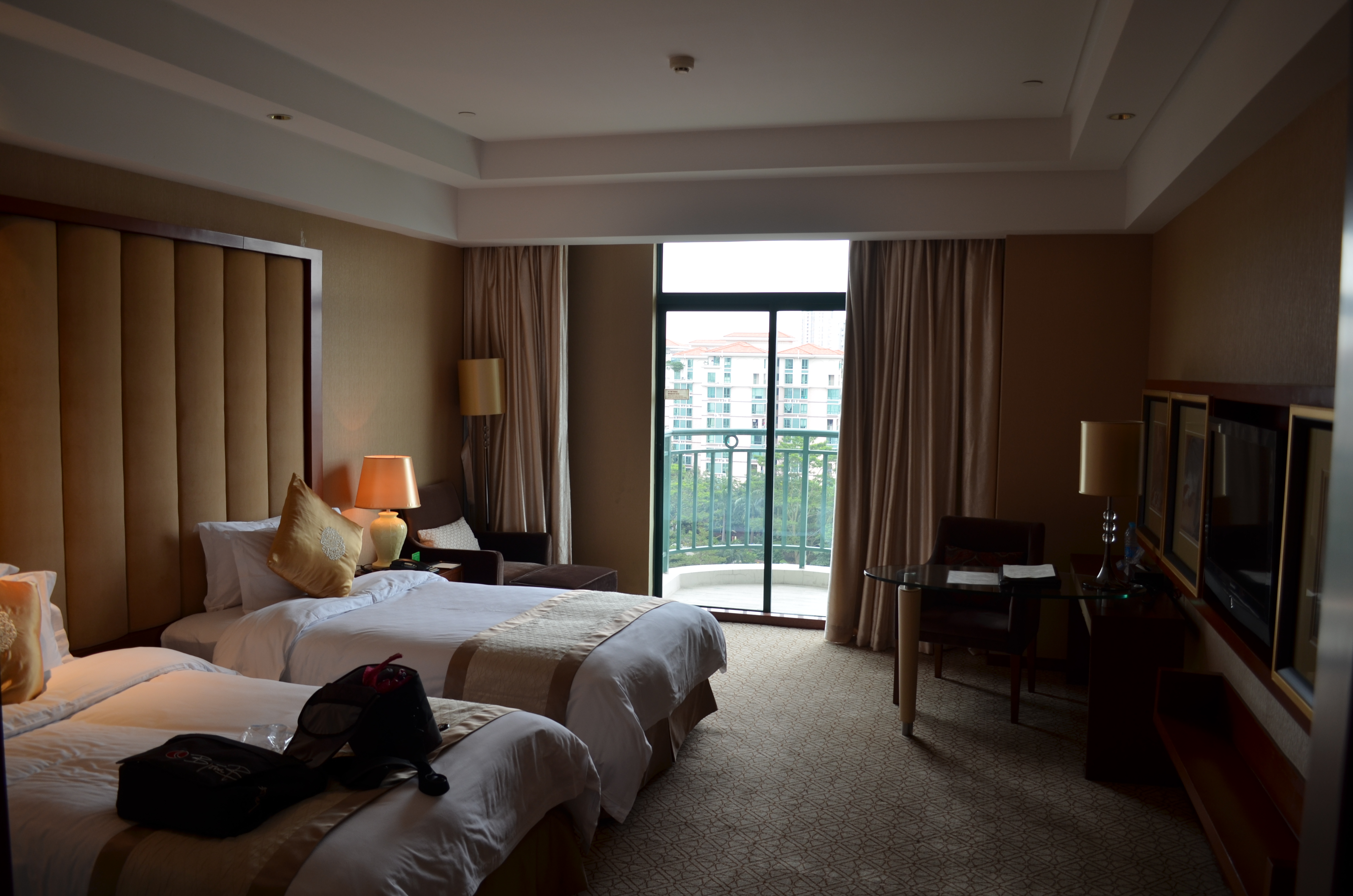Vi anlände till Zhongsan runt 2-tiden och trodde vi hade hamnat i någon öde stad men den lilla pendel stationen var visst bara lite ute på vischan. Efter fem minuter var vi inne i stan och skulle lämna våra grejer där vi skulle sova över, i en lägenhet trodde vi, men det var visst ett av Zhongsans finaste hotell. Med morgonrockar och tofflor på rummet och fri frukost!!!