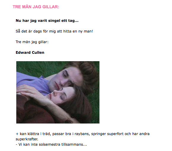 Hehe, kan inte varit speciellt kul att köpa julklappar till mig då. Till och med när jag önskade mig någon specifikt som en we-tröja 2003 (vi ville alla ha en we-tröja 2003) så kunde jag absolut inte lite på att mina föräldrar kunde köpa rätt färg på tröjan. VEM VET VAD SOM HADE HÄNT DÅ??!! Ingen vet. Men antagligen något hemskt.