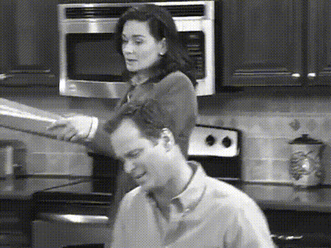 Hon: nä, eller, ska jag stå längre ifrån..om du vill…